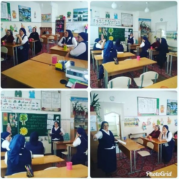Эльдарханова Л.Н. показала мастер-класс, после курсовой подготовки своим коллегам.
