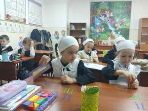 Учитель Эльдарханова Л.Н. провела урок математики в 1 А классе.Тема: Конструирование целого из частей( чисел, геометрических фигур).