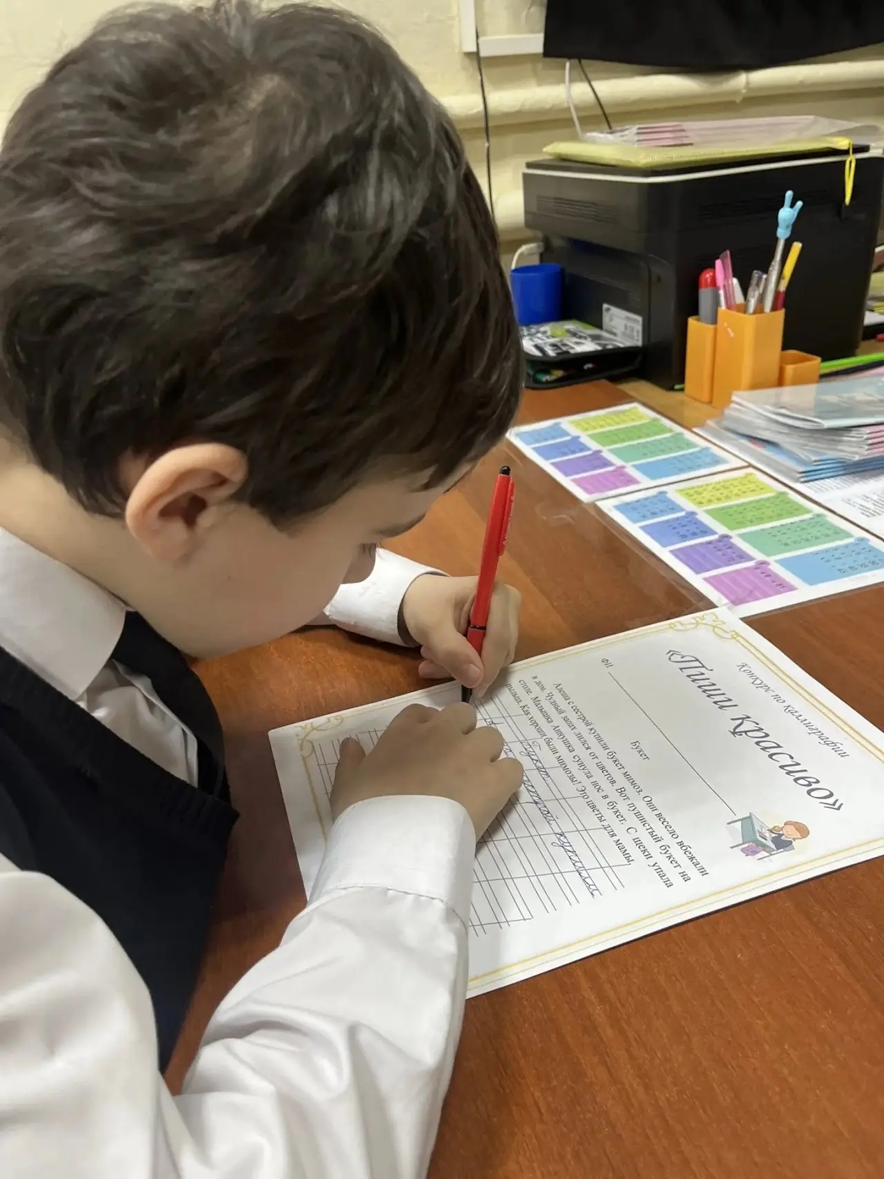 В МБОУ "НОШ Nº2 с.Гехи им.Т.Э.Эльдарханова" учитель 3А класса Ибрагимова.М.Р. провела Конкурс "Король письма" (по русскому языку) по теме "ТВОРЧЕСТВО" для 2-4 классов